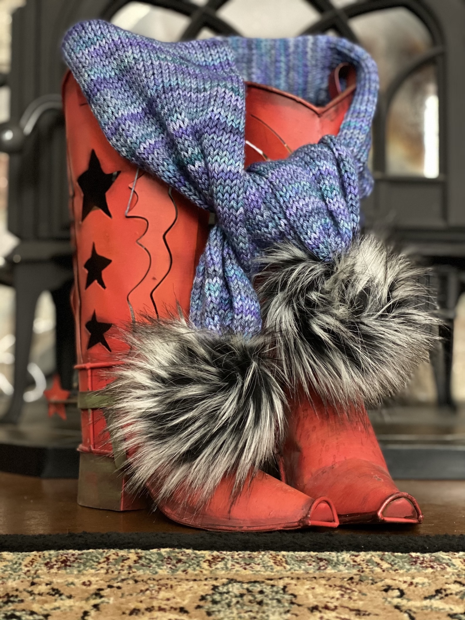 It’s my way of saying ‘job well done yarn!  It opens it up and makes the scarf stitches uniform and helps prevent rolling.