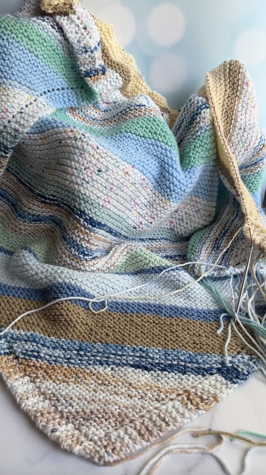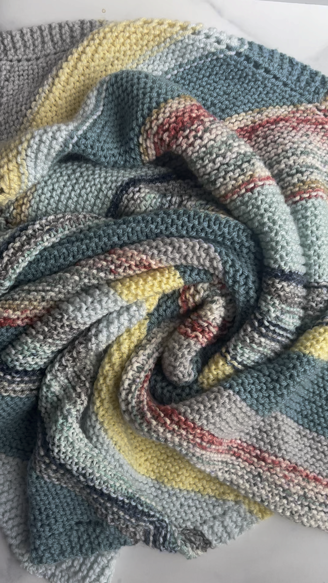 Discover how to knit the Scrappy Crosswise Baby Blanket, a great project for knitting beginners.