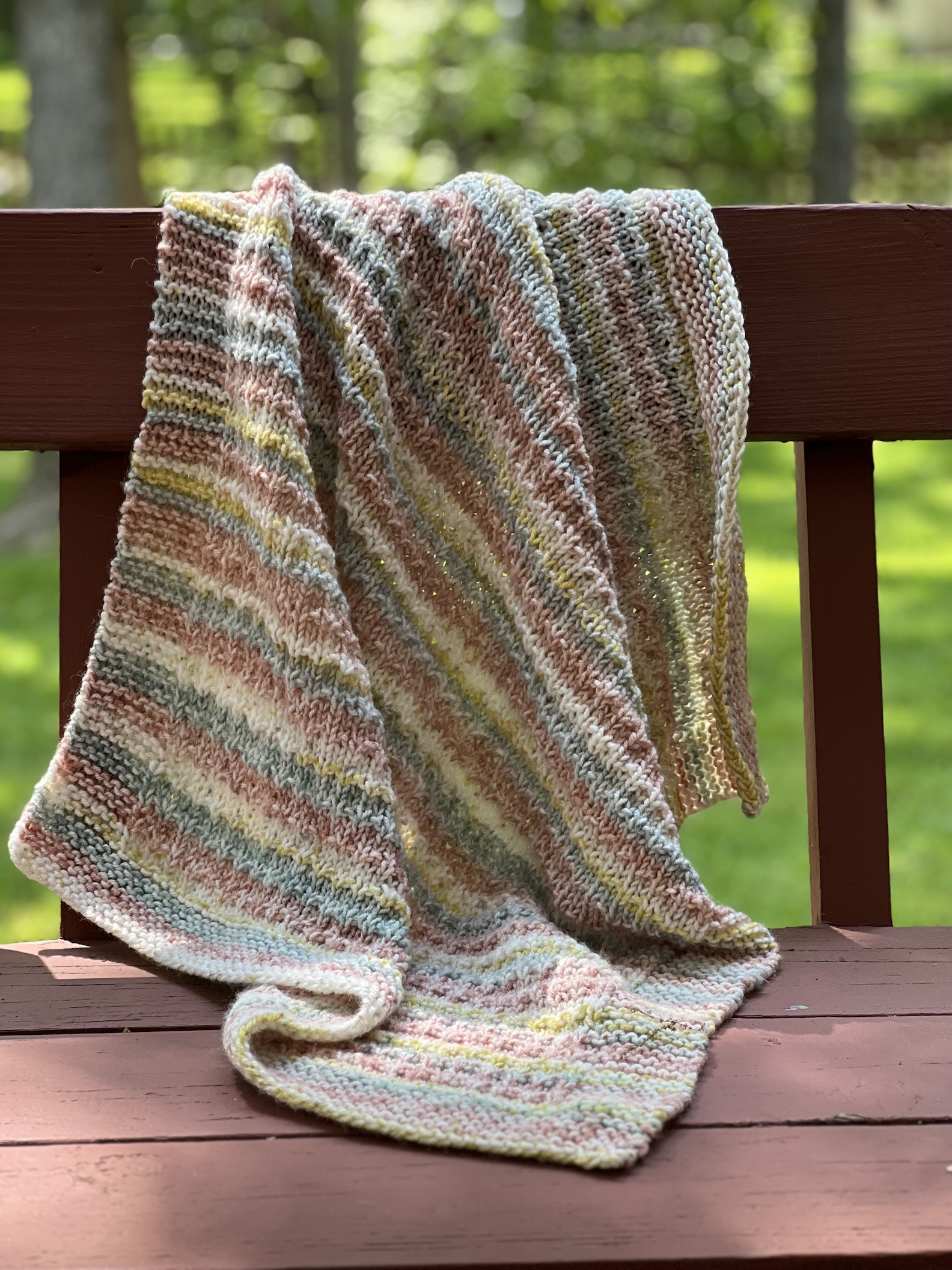 This Tiny Kisses baby blanket is knit with Hobby Lobby’s “I Love This Yarn Prints” in “After Dinner Laughs”