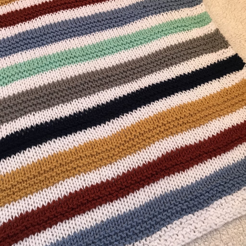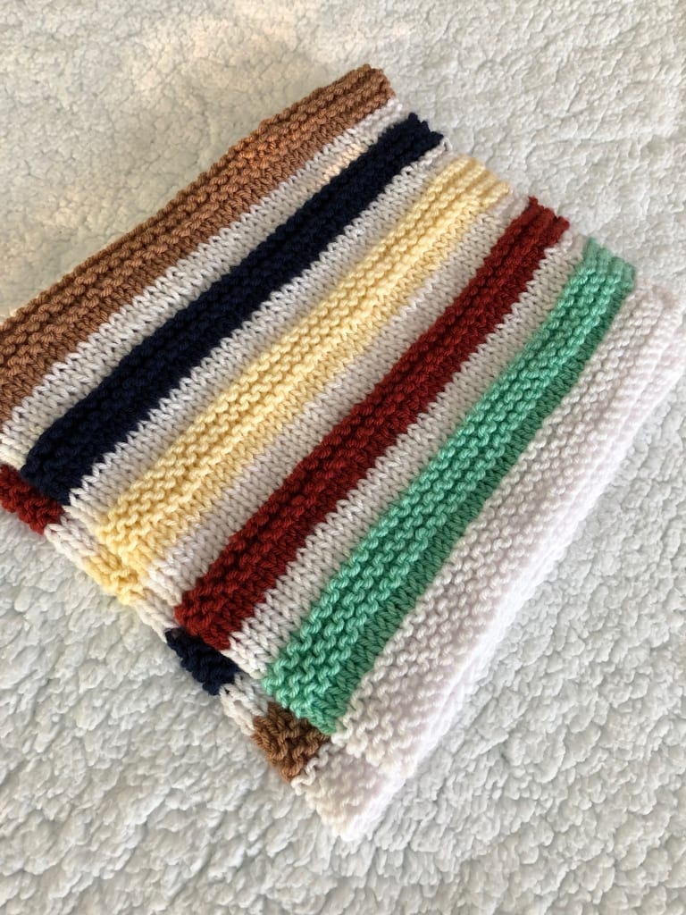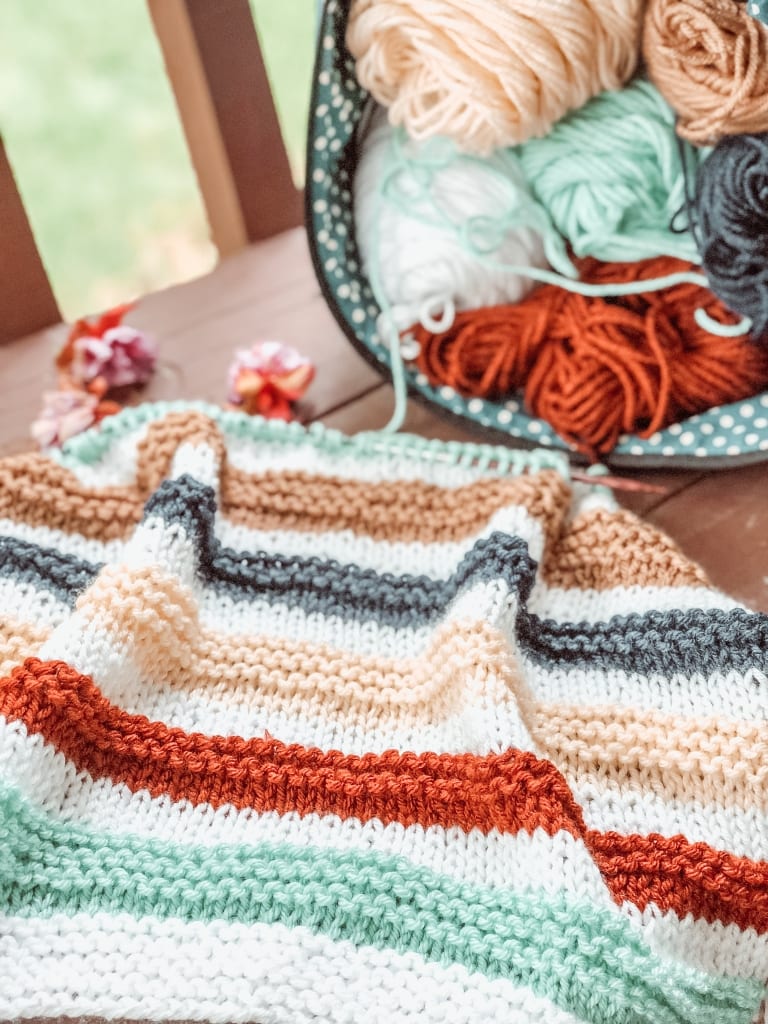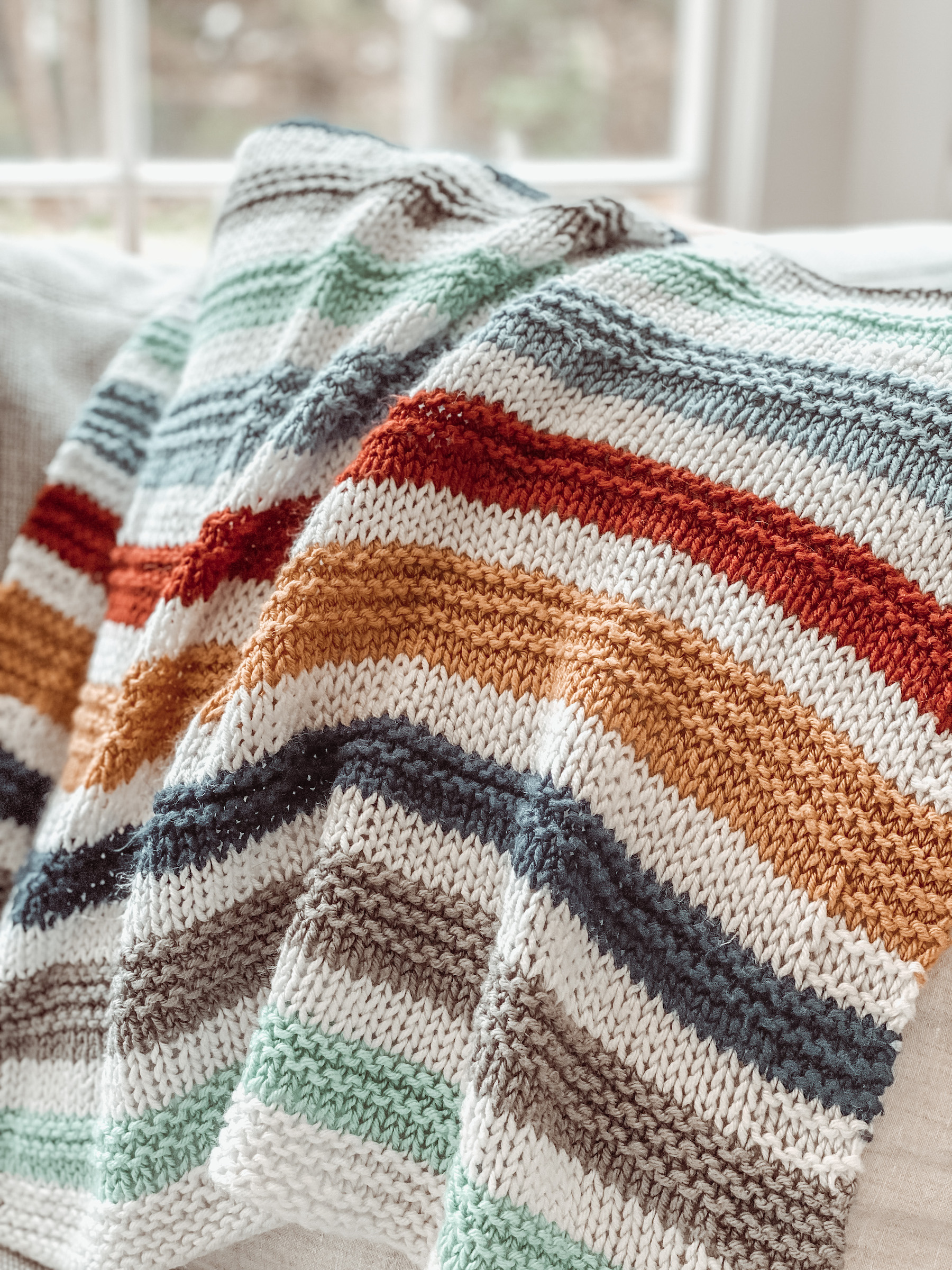It is an easy and quick knit that can be made with almost any yarn for any width and length. It has an interesting texture and is fun to knit. It’s super squishy and will definitely be a hit at a baby shower or for newborn gifting.
