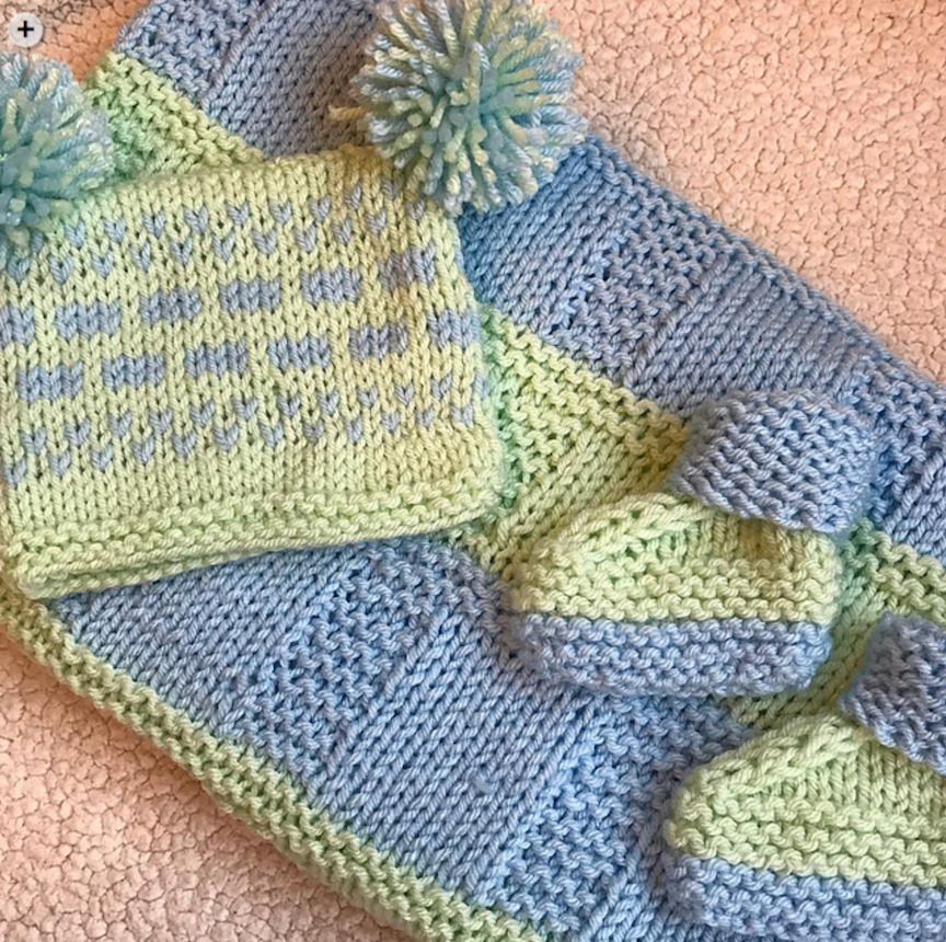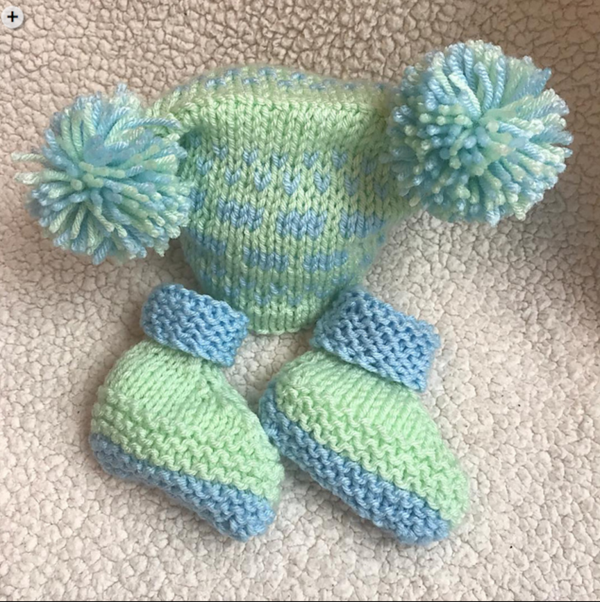 Size 6 Circular Needles for the booties and size 8 circular needles for the hat.