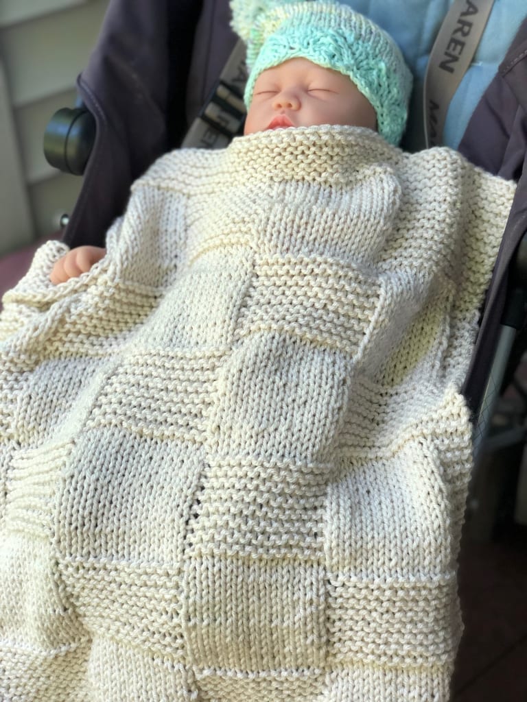 The Woven Blocks Baby Blanket is a soft, squishable, textured baby blanket suitable for newborns and young children.