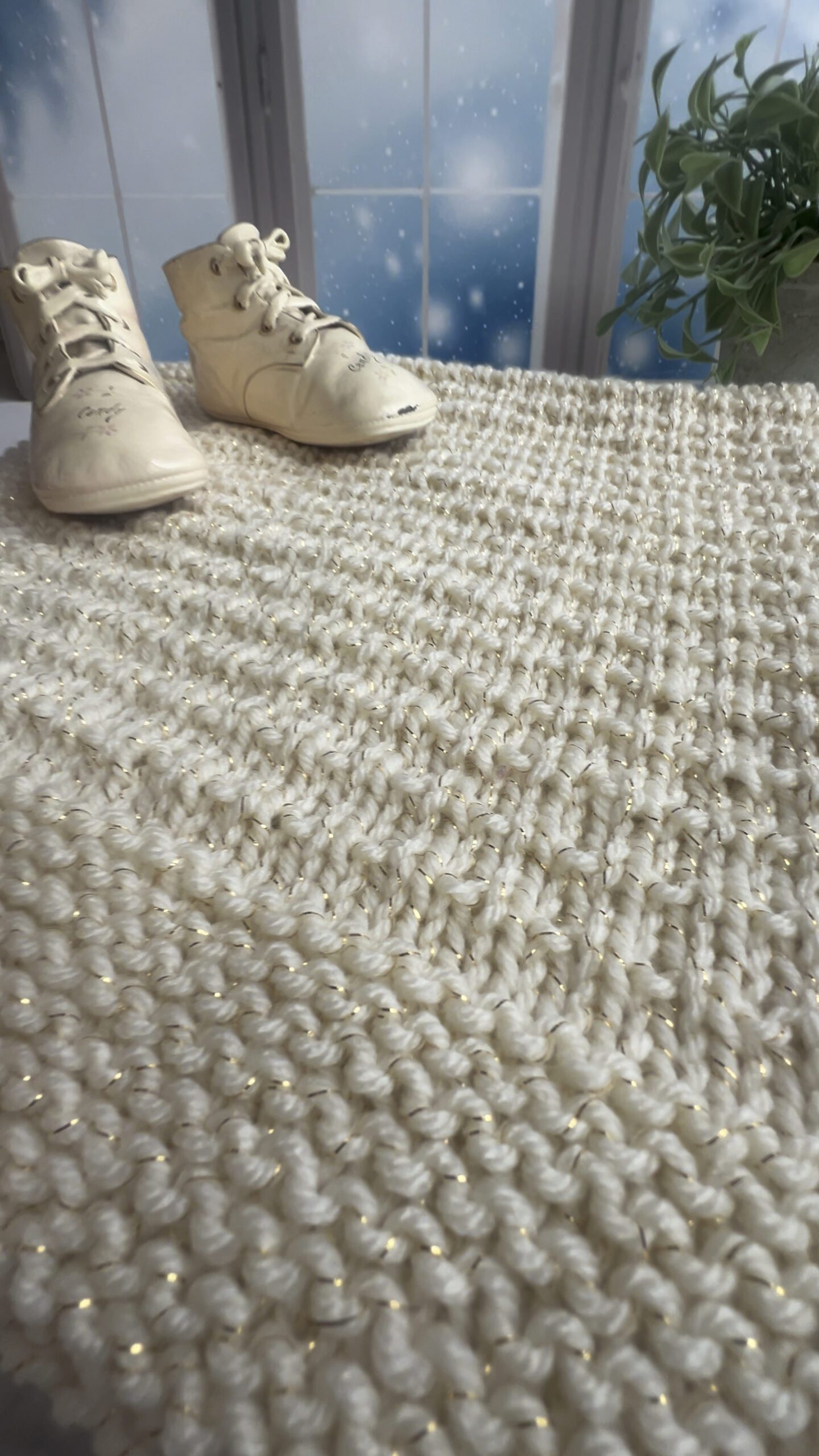 textured blanket and baby shoes